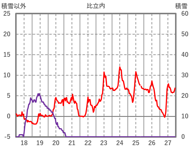 | 日 | 時 | 気温 | 降水 | 風向/風速 | 日照 | 積雪 | 降雪 |