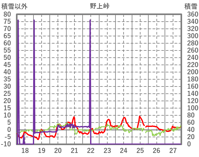 | 日 | 時 | 気温 | 降水 | 風向/風速 | 日照 | 積雪 | 降雪 |