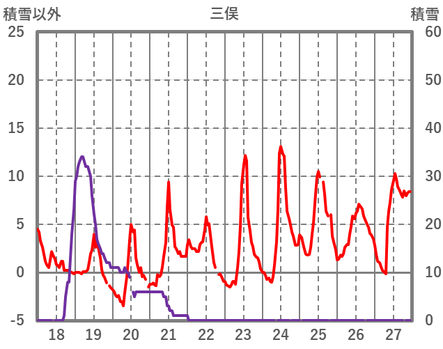 | 日 | 時 | 気温 | 降水 | 風向/風速 | 日照 | 積雪 | 降雪 |