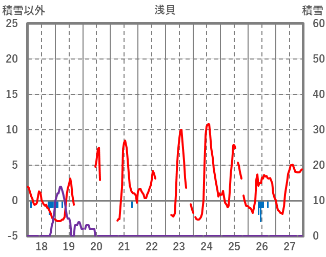 | 日 | 時 | 気温 | 降水 | 風向/風速 | 日照 | 積雪 | 降雪 |