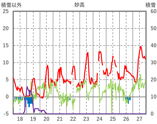 | 日 | 時 | 気温 | 降水 | 風向/風速 | 日照 | 積雪 | 降雪 |