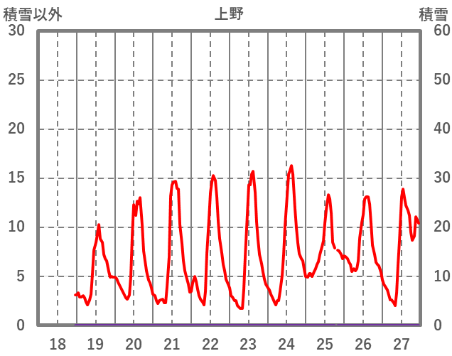 | 日 | 時 | 気温 | 降水 | 風向/風速 | 日照 | 積雪 | 降雪 |