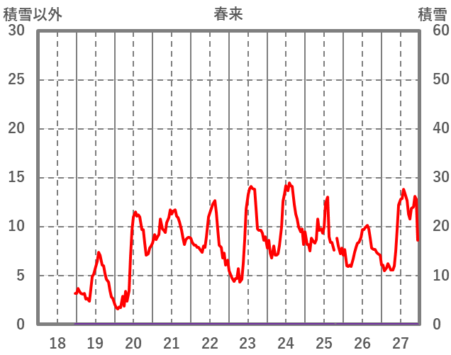 | 日 | 時 | 気温 | 降水 | 風向/風速 | 日照 | 積雪 | 降雪 |