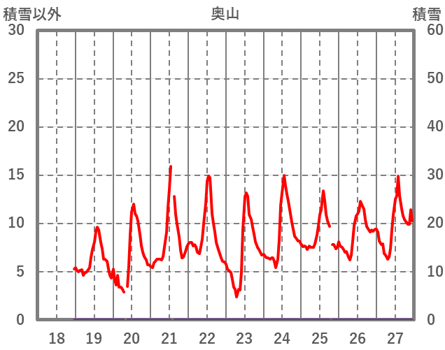 | 日 | 時 | 気温 | 降水 | 風向/風速 | 日照 | 積雪 | 降雪 |