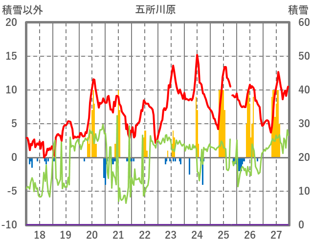 | 日 | 時 | 気温 | 降水 | 風向/風速 | 日照 | 積雪 | 降雪 |