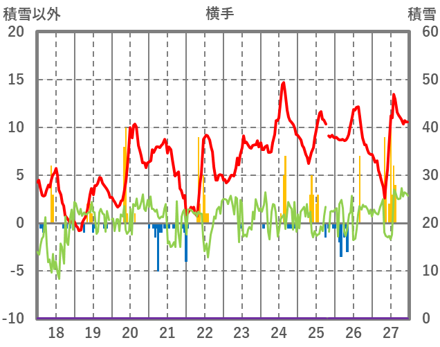 | 日 | 時 | 気温 | 降水 | 風向/風速 | 日照 | 積雪 | 降雪 |