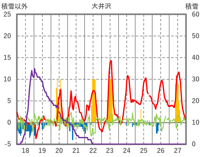 | 日 | 時 | 気温 | 降水 | 風向/風速 | 日照 | 積雪 | 降雪 |