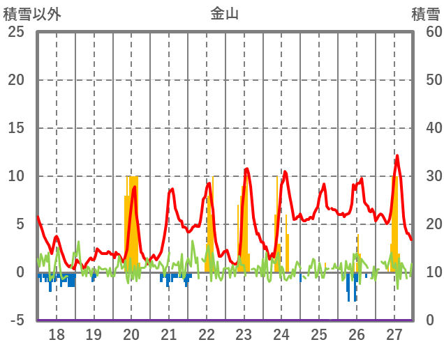 | 日 | 時 | 気温 | 降水 | 風向/風速 | 日照 | 積雪 | 降雪 |