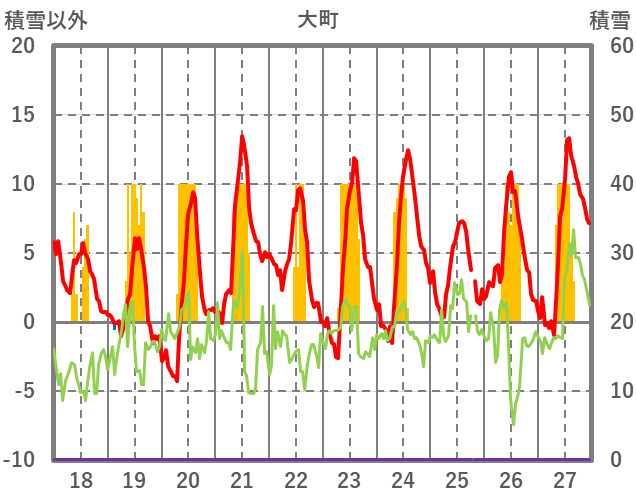 | 日 | 時 | 気温 | 降水 | 風向/風速 | 日照 | 積雪 | 降雪 |