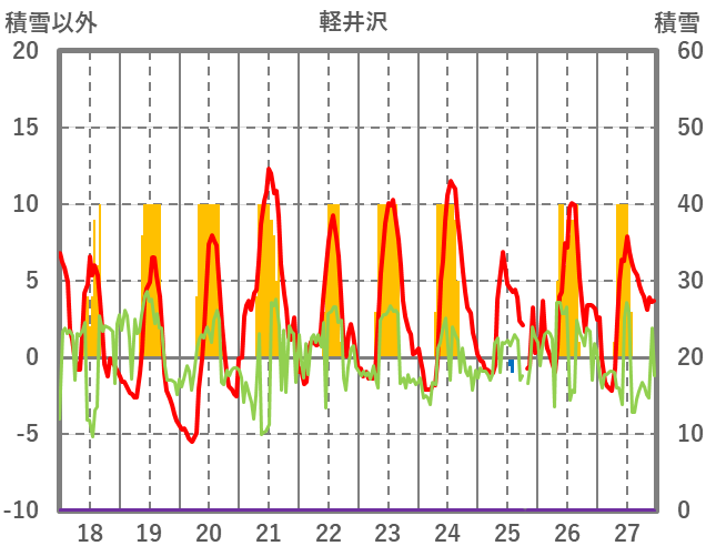 | 日 | 時 | 気温 | 降水 | 風向/風速 | 日照 | 積雪 | 降雪 |