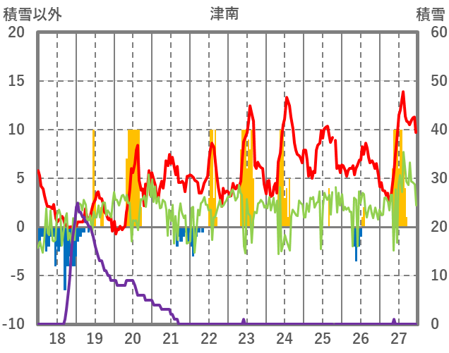 | 日 | 時 | 気温 | 降水 | 風向/風速 | 日照 | 積雪 | 降雪 |