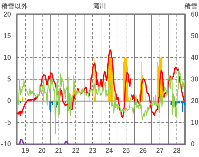 | 日 | 時 | 気温 | 降水 | 風向/風速 | 日照 | 積雪 | 降雪 |