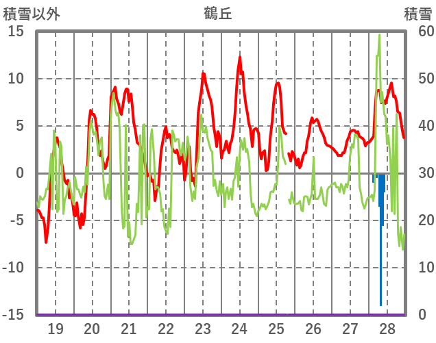 | 日 | 時 | 気温 | 降水 | 風向/風速 | 日照 | 積雪 | 降雪 |