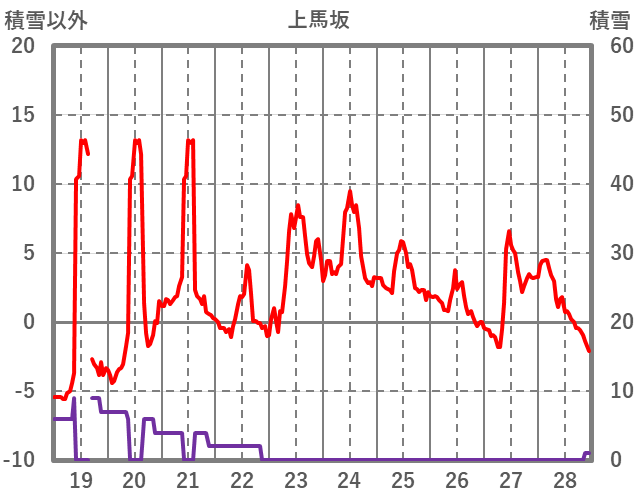 | 日 | 時 | 気温 | 降水 | 風向/風速 | 日照 | 積雪 | 降雪 |