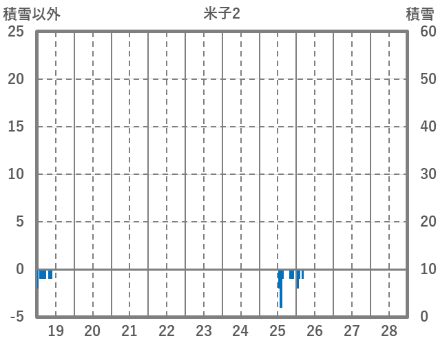 | 日 | 時 | 気温 | 降水 | 風向/風速 | 日照 | 積雪 | 降雪 |
