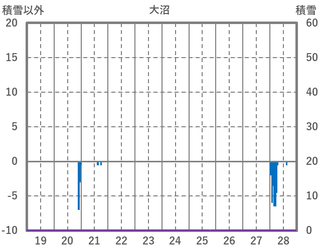 | 日 | 時 | 気温 | 降水 | 風向/風速 | 日照 | 積雪 | 降雪 |