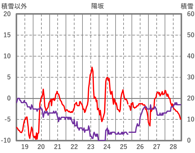 | 日 | 時 | 気温 | 降水 | 風向/風速 | 日照 | 積雪 | 降雪 |