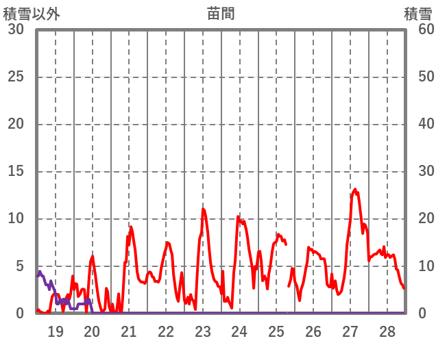 | 日 | 時 | 気温 | 降水 | 風向/風速 | 日照 | 積雪 | 降雪 |