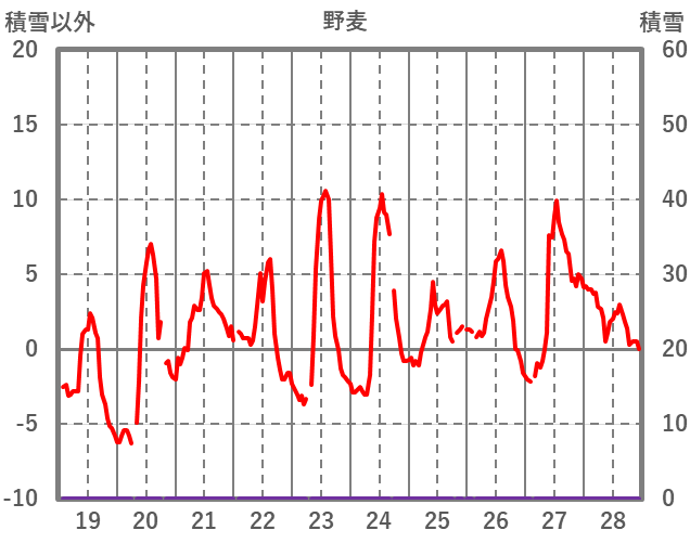 | 日 | 時 | 気温 | 降水 | 風向/風速 | 日照 | 積雪 | 降雪 |