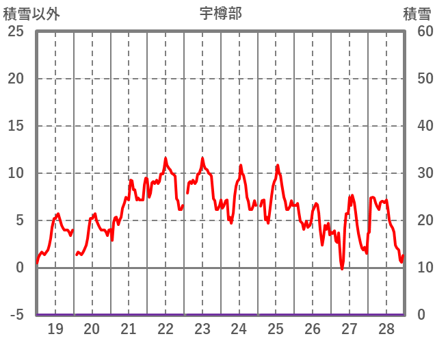 | 日 | 時 | 気温 | 降水 | 風向/風速 | 日照 | 積雪 | 降雪 |