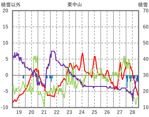 | 日 | 時 | 気温 | 降水 | 風向/風速 | 日照 | 積雪 | 降雪 |