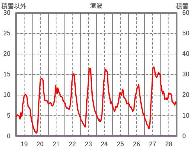 | 日 | 時 | 気温 | 降水 | 風向/風速 | 日照 | 積雪 | 降雪 |