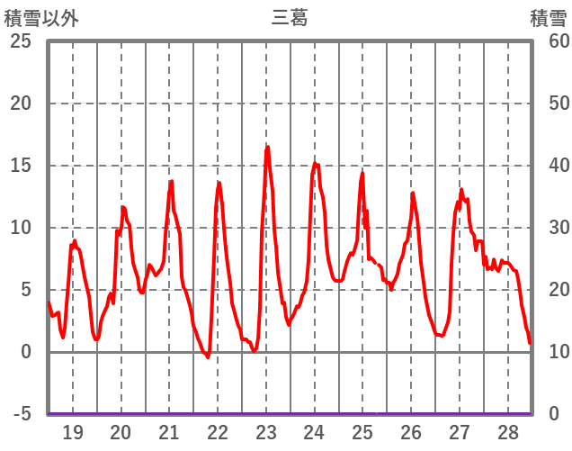| 日 | 時 | 気温 | 降水 | 風向/風速 | 日照 | 積雪 | 降雪 |
