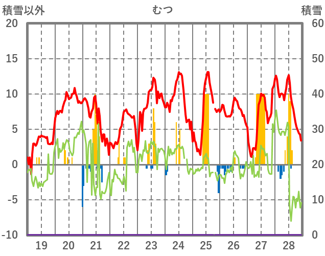 | 日 | 時 | 気温 | 降水 | 風向/風速 | 日照 | 積雪 | 降雪 |