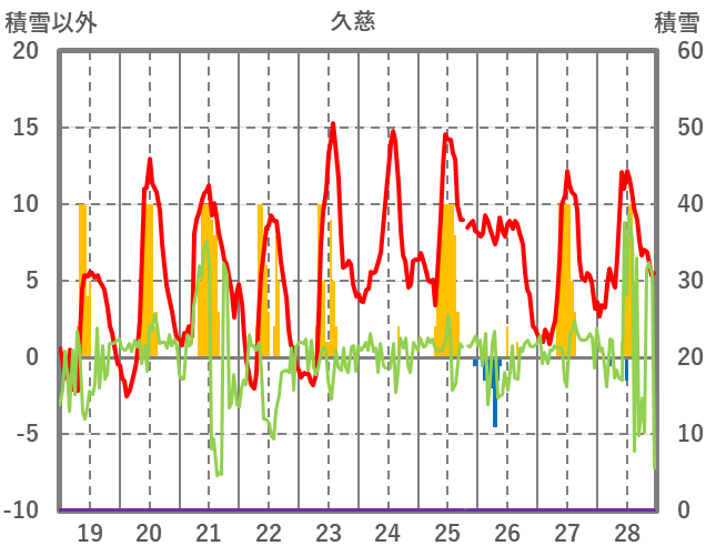| 日 | 時 | 気温 | 降水 | 風向/風速 | 日照 | 積雪 | 降雪 |