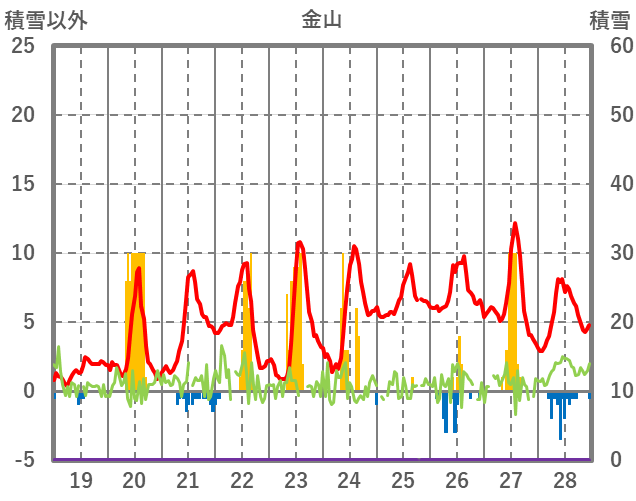 | 日 | 時 | 気温 | 降水 | 風向/風速 | 日照 | 積雪 | 降雪 |
