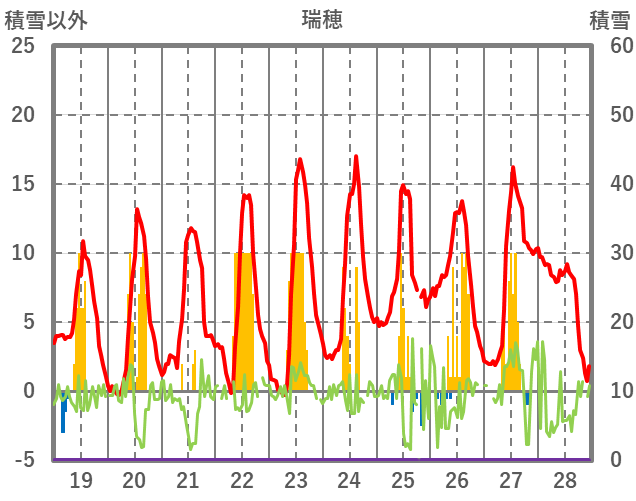 | 日 | 時 | 気温 | 降水 | 風向/風速 | 日照 | 積雪 | 降雪 |