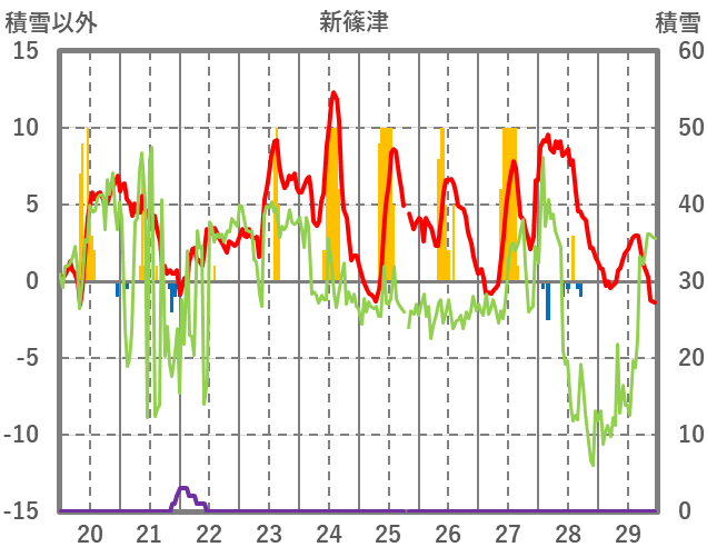 | 日 | 時 | 気温 | 降水 | 風向/風速 | 日照 | 積雪 | 降雪 |