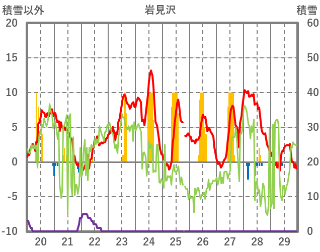 | 日 | 時 | 気温 | 降水 | 風向/風速 | 日照 | 積雪 | 降雪 |