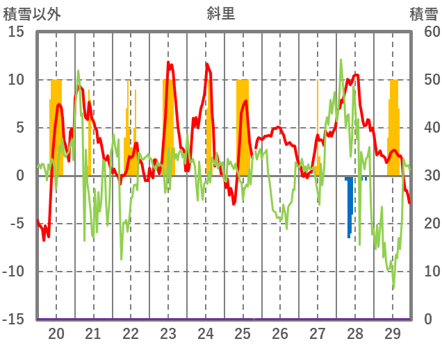 | 日 | 時 | 気温 | 降水 | 風向/風速 | 日照 | 積雪 | 降雪 |