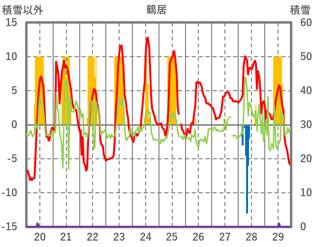 | 日 | 時 | 気温 | 降水 | 風向/風速 | 日照 | 積雪 | 降雪 |