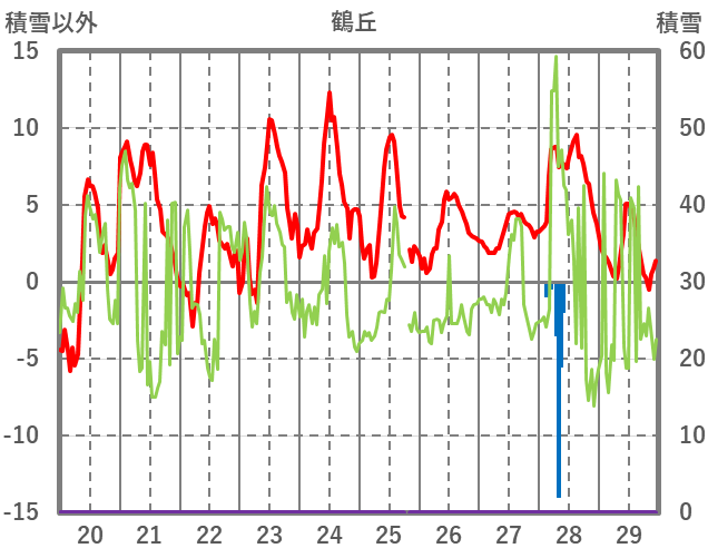 | 日 | 時 | 気温 | 降水 | 風向/風速 | 日照 | 積雪 | 降雪 |