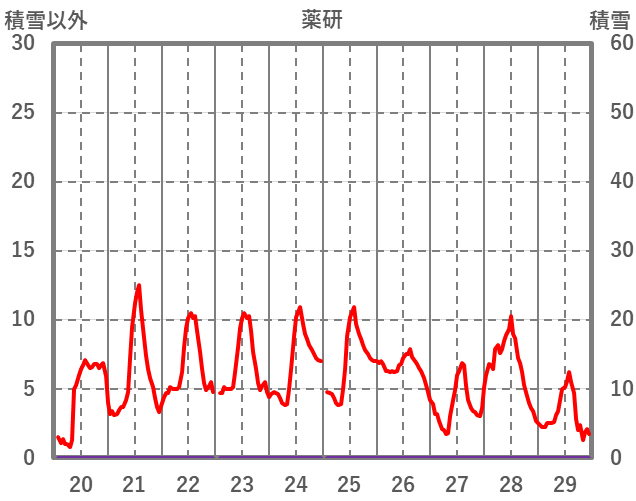 | 日 | 時 | 気温 | 降水 | 風向/風速 | 日照 | 積雪 | 降雪 |