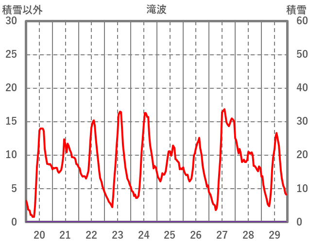| 日 | 時 | 気温 | 降水 | 風向/風速 | 日照 | 積雪 | 降雪 |