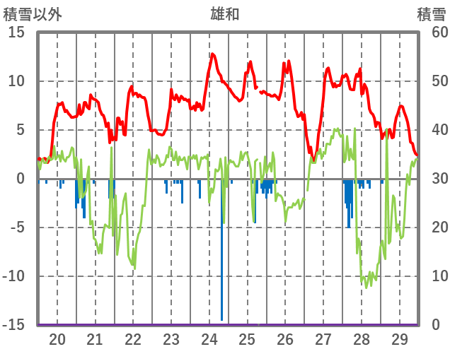 | 日 | 時 | 気温 | 降水 | 風向/風速 | 日照 | 積雪 | 降雪 |