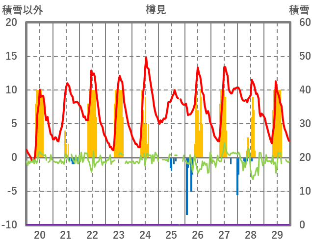 | 日 | 時 | 気温 | 降水 | 風向/風速 | 日照 | 積雪 | 降雪 |