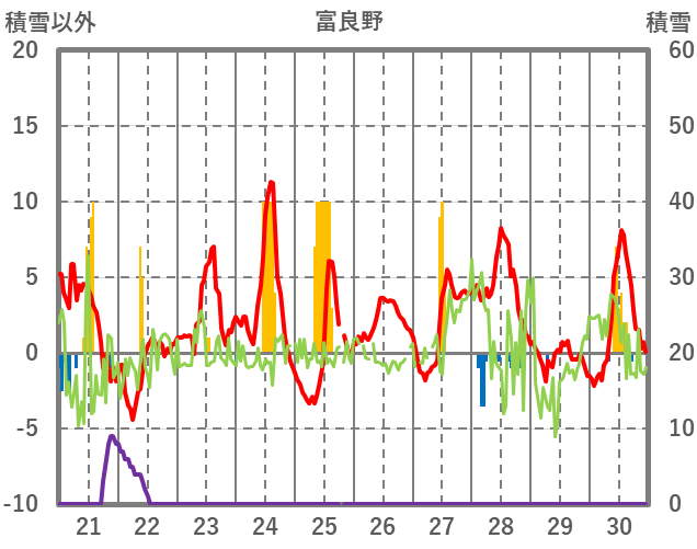 | 日 | 時 | 気温 | 降水 | 風向/風速 | 日照 | 積雪 | 降雪 |