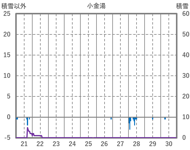 | 日 | 時 | 気温 | 降水 | 風向/風速 | 日照 | 積雪 | 降雪 |