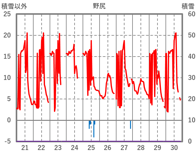 | 日 | 時 | 気温 | 降水 | 風向/風速 | 日照 | 積雪 | 降雪 |