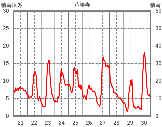 | 日 | 時 | 気温 | 降水 | 風向/風速 | 日照 | 積雪 | 降雪 |