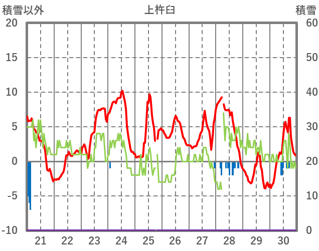 | 日 | 時 | 気温 | 降水 | 風向/風速 | 日照 | 積雪 | 降雪 |