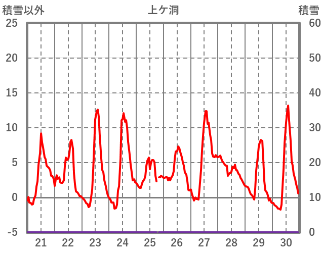 | 日 | 時 | 気温 | 降水 | 風向/風速 | 日照 | 積雪 | 降雪 |