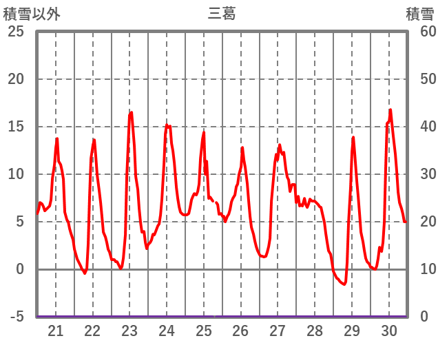 | 日 | 時 | 気温 | 降水 | 風向/風速 | 日照 | 積雪 | 降雪 |
