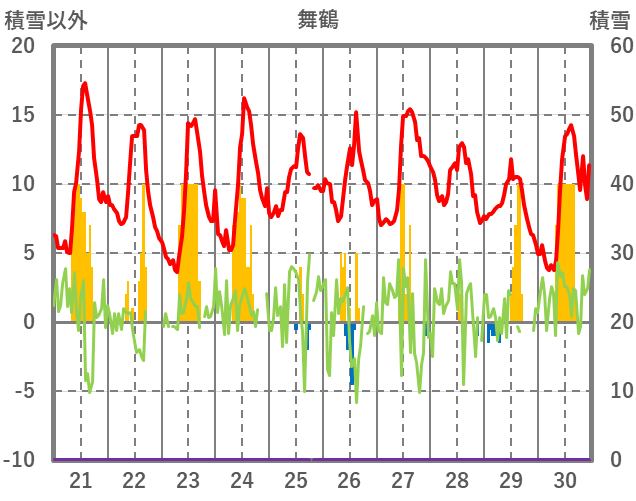 | 日 | 時 | 気温 | 降水 | 風向/風速 | 日照 | 積雪 | 降雪 |