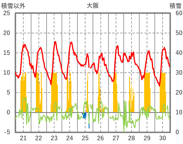 | 日 | 時 | 気温 | 降水 | 風向/風速 | 日照 | 積雪 | 降雪 |