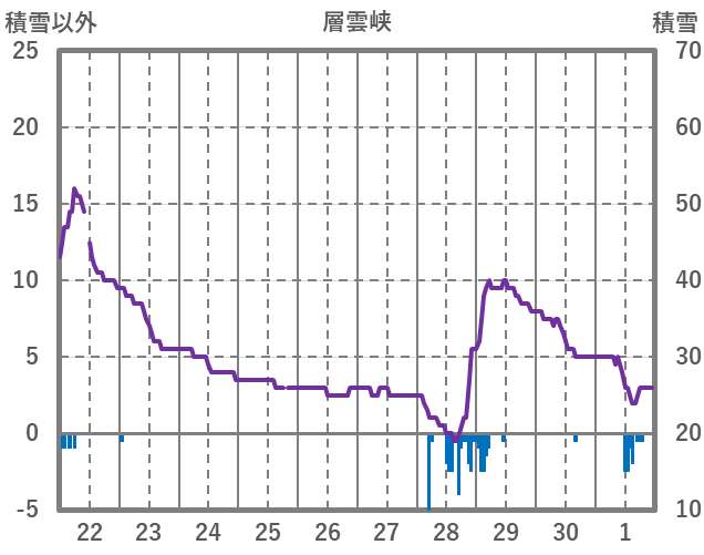 | 日 | 時 | 気温 | 降水 | 風向/風速 | 日照 | 積雪 | 降雪 |